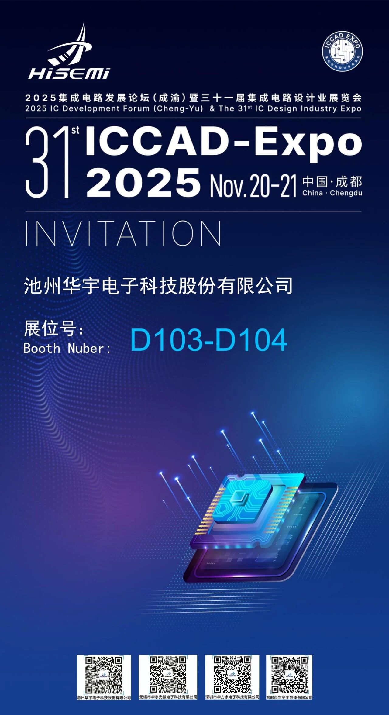 11月20-21日,中国集成电路设计业2025年会(ICCAD 2025) 在成都圆满落幕。华宇电子携先进封装FCBGA一站式解决方案精彩亮相,来自全国各地的行