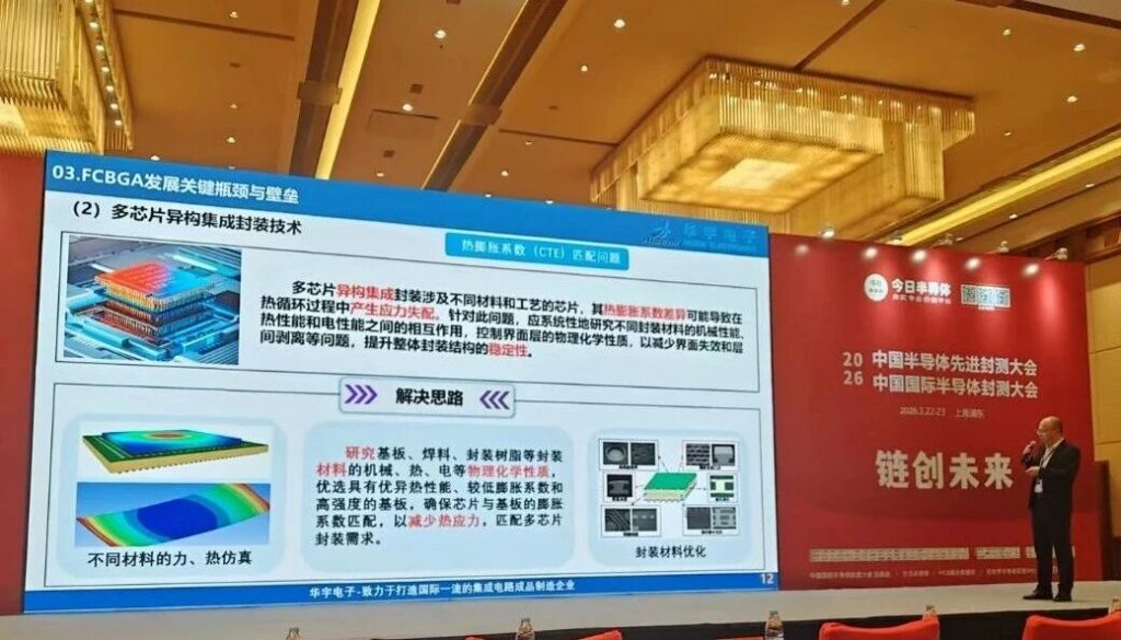 3月23日,2026中国半导体先进封测大会正式举办,华宇电子受邀精彩亮相,聚焦先进封装FCBGA的机遇与挑战发表主题分享,与行业精英共探后摩尔时代先进封测产业发展方向。